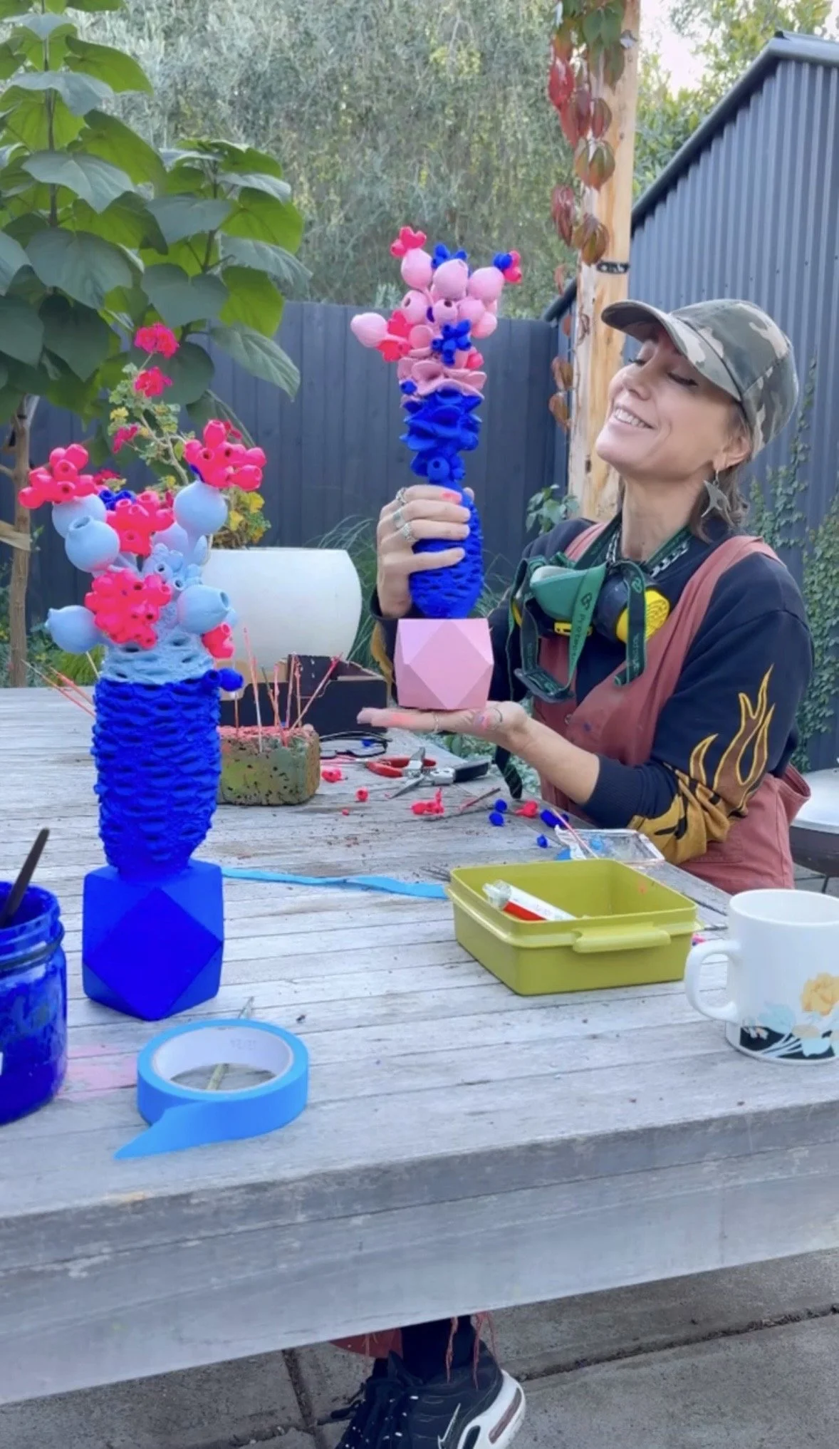 “At the front of my consciousness sculpture practice is the urgent need to address climate change and preserve our precious ecosystem. I feel compelled to make art that deeply considers our global climate crisis, because it is the biggest challenge of my lifetime. Why can’t so many political leaders recognise the urgency? I use recycled materials to make objects that symbolise our exotic, native Australian plants. The feminine shapes and colours stand for my belief that we need to invest in value ‘feminine’ qualities for our planet to survive. Qualities such as caring, nurturing, educating, creative thinking, inclusivity etc. My tool for change is art and investing in my community”.